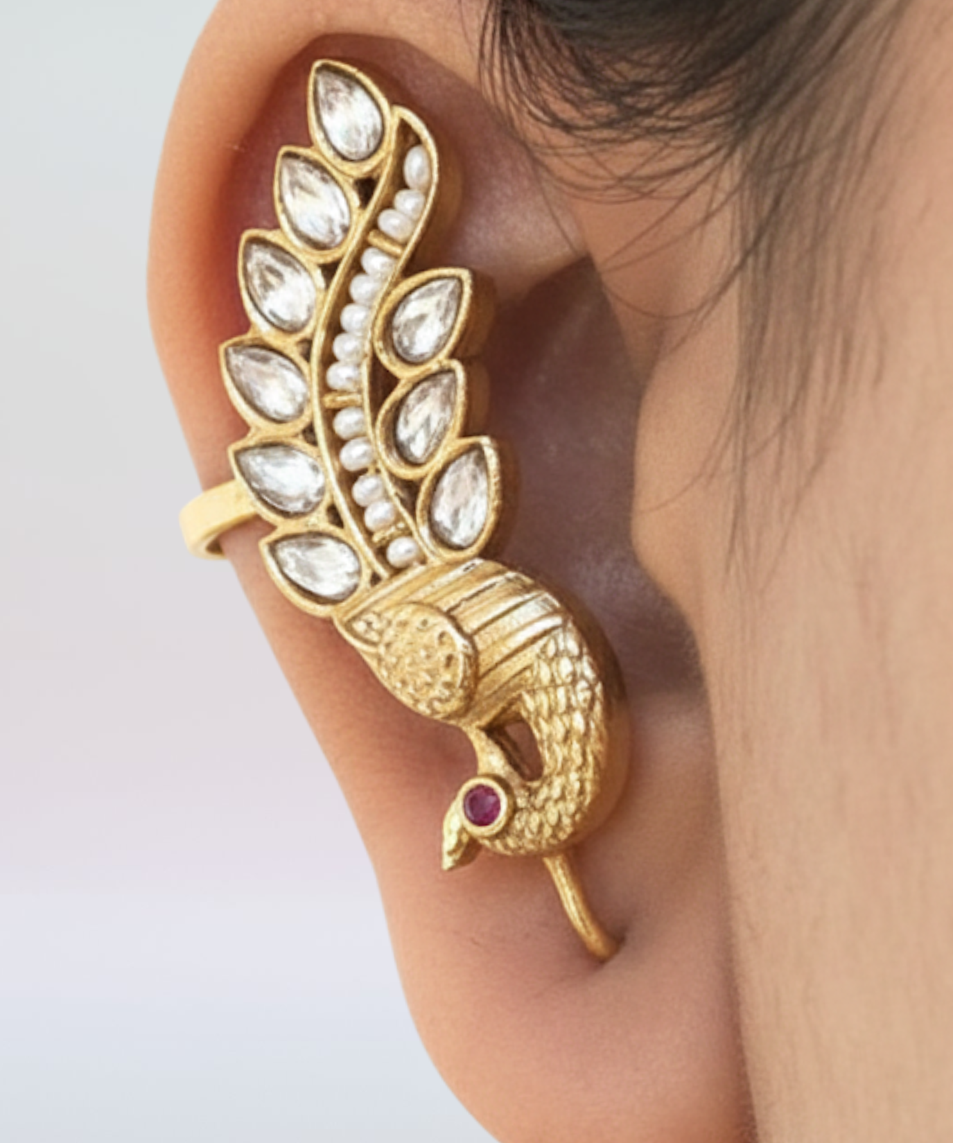 Peacock Ear Cuff Kundan and Feroza