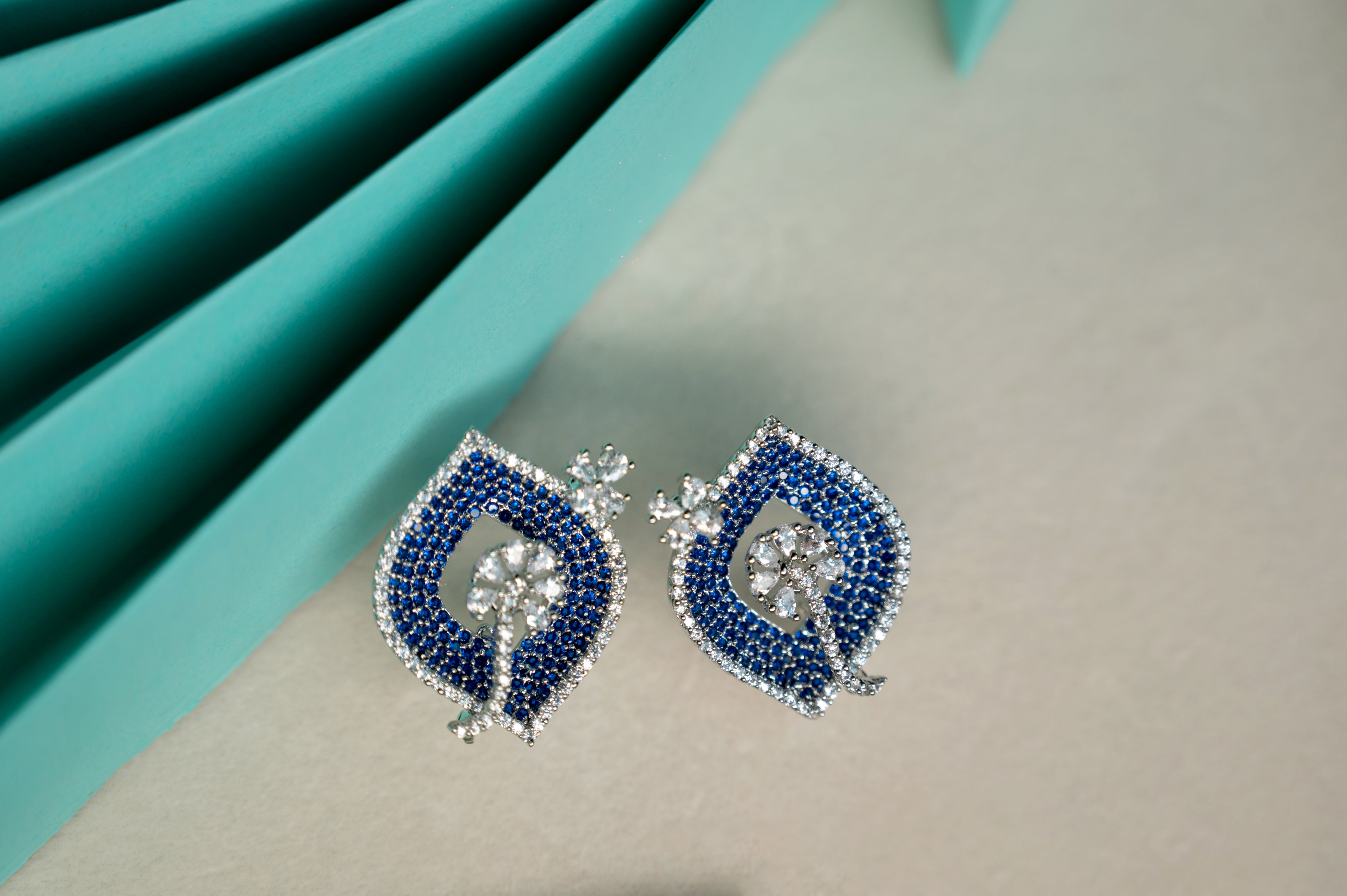These enchanting studs are a fusion of modern artistry and timeless elegance. Crafted with fine zirconia and finished in emerald and sapphire tones, they feature a delicate floral bloom framed by sparkling stones — a perfect ode to refined femininity.