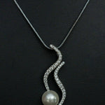 The sleek, diamond-studded wave motif flows gracefully into a luminous pearl drop, creating a perfect harmony of sparkle and softness. Paired with matching earrings, it’s the ideal piece for evening elegance, bridal sophistication, or refined everyday glamour.